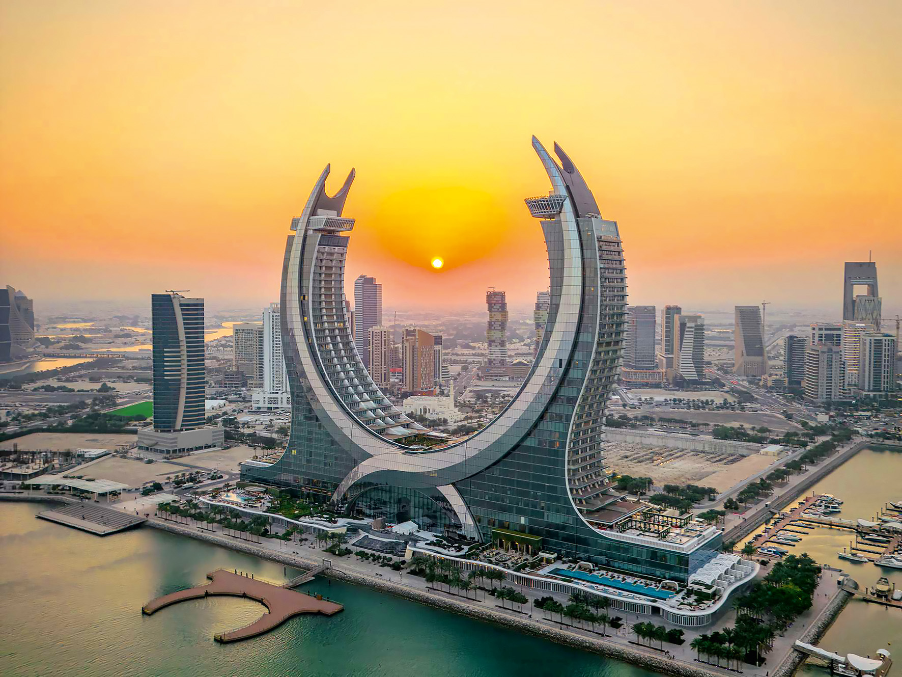 Raffles – один из двух отелей комплекса Katara Towers, построенного в форме скрещенных сабель. И это символично, ведь сабля – атрибут восточной культуры. Увидеть саблю в наши дни можно во время традиционного танца “арды” или на дипломатических приемах – это самый красивый презент из Катара. Приобрести такую можете и вы: уже готовую или созданную лично для вас по индивидуальному дизайну, с резьбой и гравировкой, узорами из золота и серебра и драгоценными камнями.