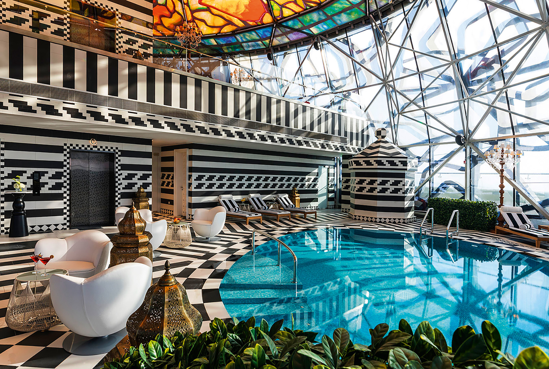Влюбленные в искусство получат наслаждение от пребывания в отеле Mondrian Doha по проекту Марселя Вандерса: с гигантской винтовой лестницей в лобби, витражным куполом над бассейном, массивными колоннами и светильниками. Здесь первый на Ближнем Востоке ресторан Масахару Моримото, бар на крыше, ночной клуб и сигарный лаунж, спа-центр ESPA с хаммамом.