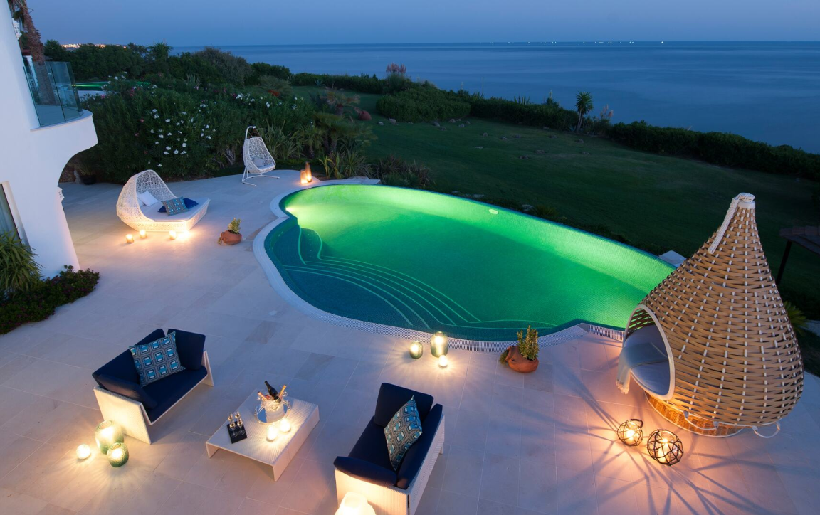 The villa sits above the cliff-lined Algarve coastline, just steps from the beach and all the Vila Vita Parc restaurants, bars and facilities. Four suites, ocean vistas, lounges and terraces, while furnishings from leading names in the design world and original artworks are peppered throughout the property.