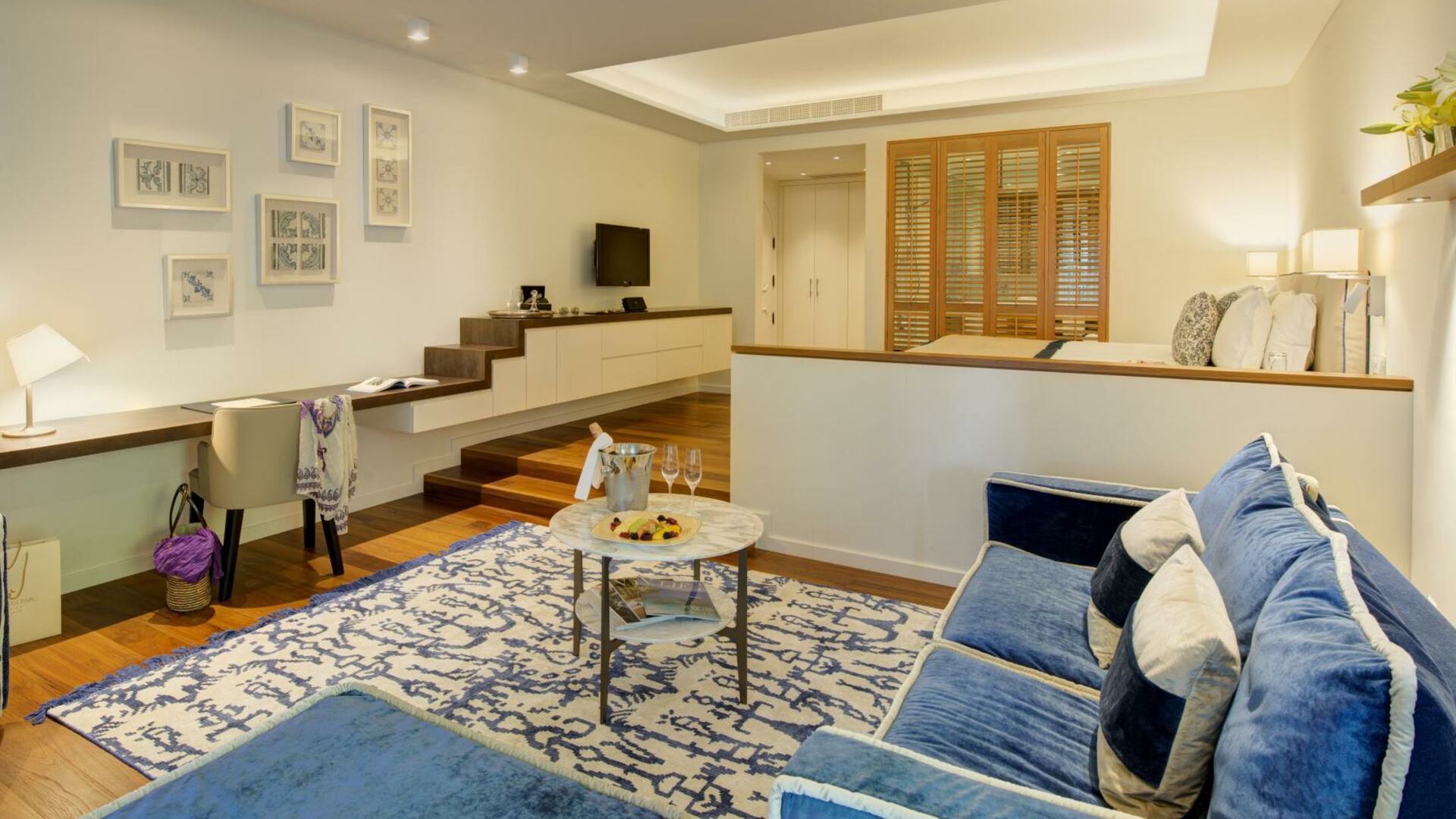 Located at either end of Vila Vita Parc’s main building, split-level Junior Suites are crisp and contemporary in style. Ocean-influenced details and a Portuguese tile mosaic nod to Vila Vita Parc’s surroundings.