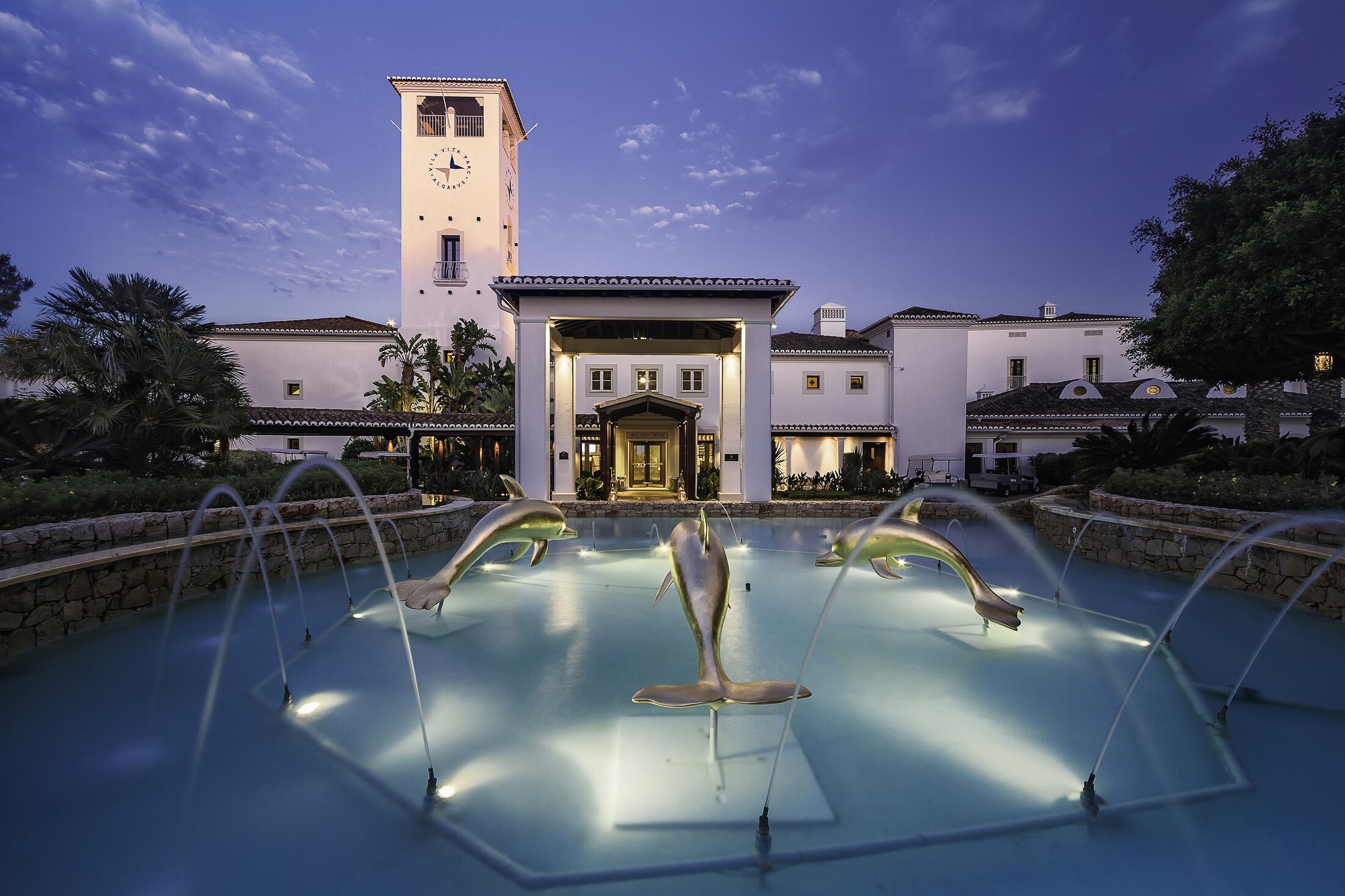 Vila Vita Parc Resort & Spa is one of Portugal's most renowned five-star resorts, located on the Atlantic coast of the Algarve, in the Porches/Alporchinhos area. The resort occupies 22 hectares of tropical gardens and parkland, creating the feeling of a secluded, green oasis right by the ocean. The hotel's architectural style reflects Moorish influences and a characteristic Algarve aesthetic, combining crisp white facades, terracotta roofs, arches, and floral accents. The interior design is modern, elegant, and functional, featuring natural materials, high-quality furniture, and signature details. The resort is widely known for its diverse amenities: from spacious rooms and villas with ocean views to numerous restaurants, a spa, and active sports and entertainment areas. It successfully combines luxury, family vacations, romance, and business opportunities, providing a high level of service and a personalized approach to guests.