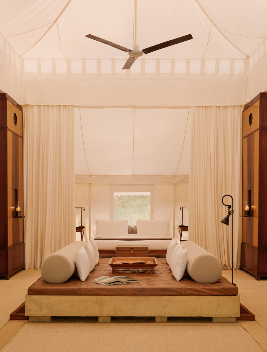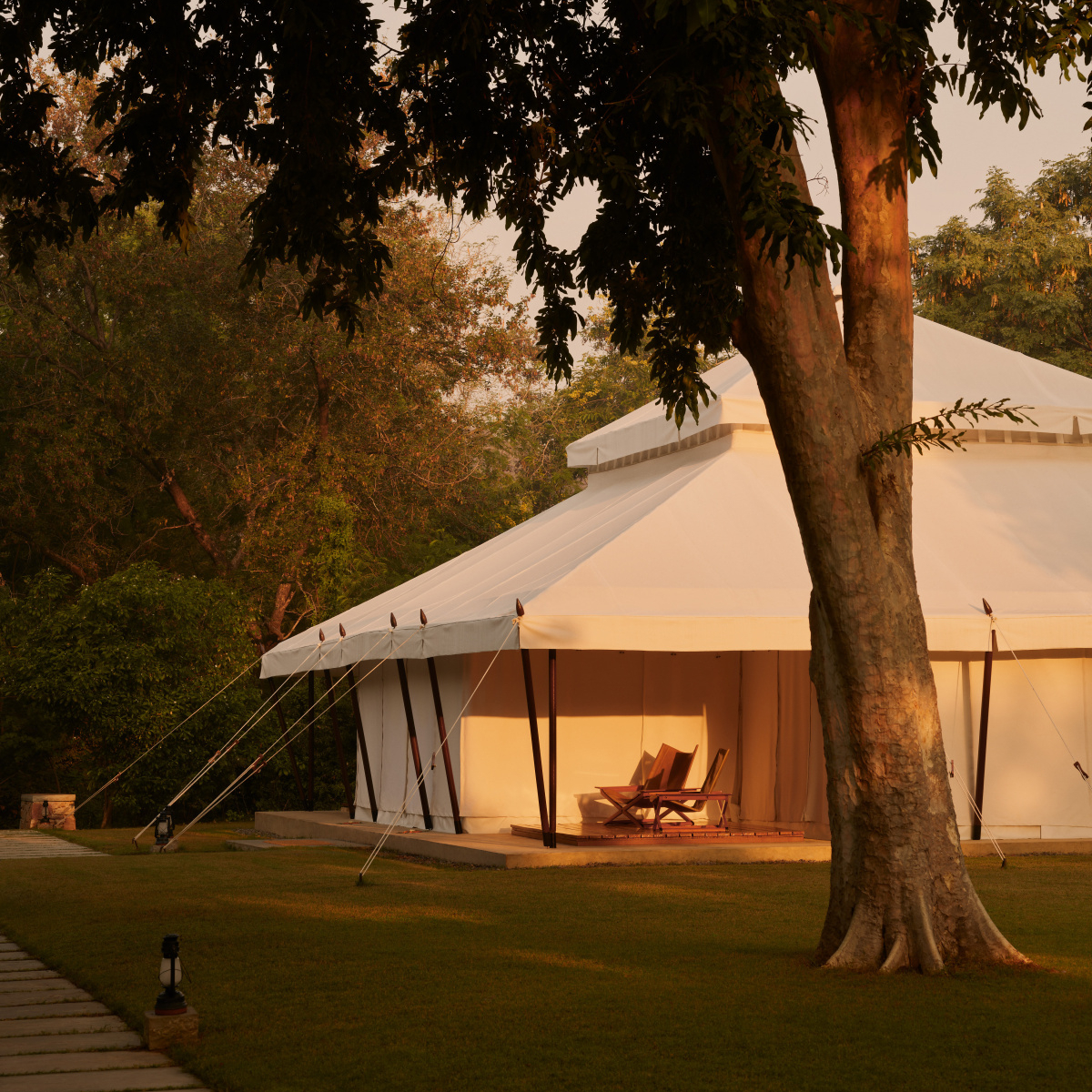 Aman-i-Khas is an elegant luxury safari camp located in the heart of the Ranthambore Wildlife Sanctuary, India. Just ten Mughal-style tents are created for an inspired immersion in nature: airy interiors, cotton drapes, spacious bedrooms and baths. The gated area, central pool and wildlife landscapes create a feeling of absolute exclusivity. The uniqueness of the camp is the opportunity to watch the tigers of Ranthambore without leaving the luxury and comfort. Aman-i-Khás is an elegant luxury safari lodge located in the heart of Ranthambore Wildlife Sanctuary, India. Just ten Mughal-style tents are designed to provide an inspiring immersion into nature, with airy interiors, cotton drapes, spacious bedrooms and baths. The gated community, central swimming pool and wildlife views create a feeling of absolute exclusivity. What makes the lodge unique is the opportunity to view Ranthambore’s tigers in luxury and comfort.