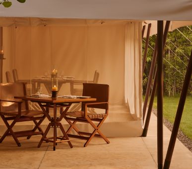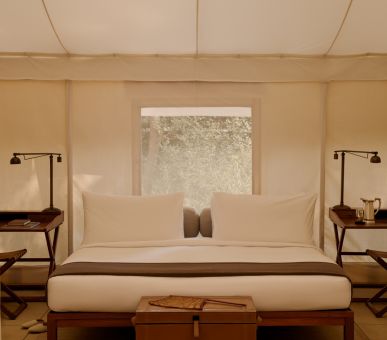 The camp consists of 10 luxurious tents, each measuring 108m². Inside, there is a bedroom with a king-size bed (or twin), a sitting area with a daybed, a dining area, a bathroom with a shower and a free-standing bathtub, two sinks, a dressing room and a spacious private terrace. All tents are equipped with air conditioning, fans, heating, Wi-Fi and a personal butler providing 24/7 service.