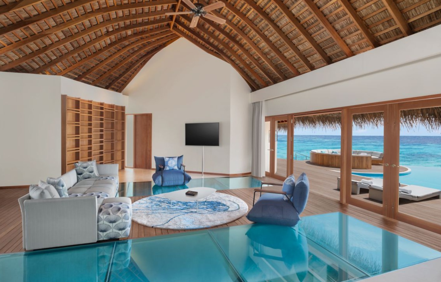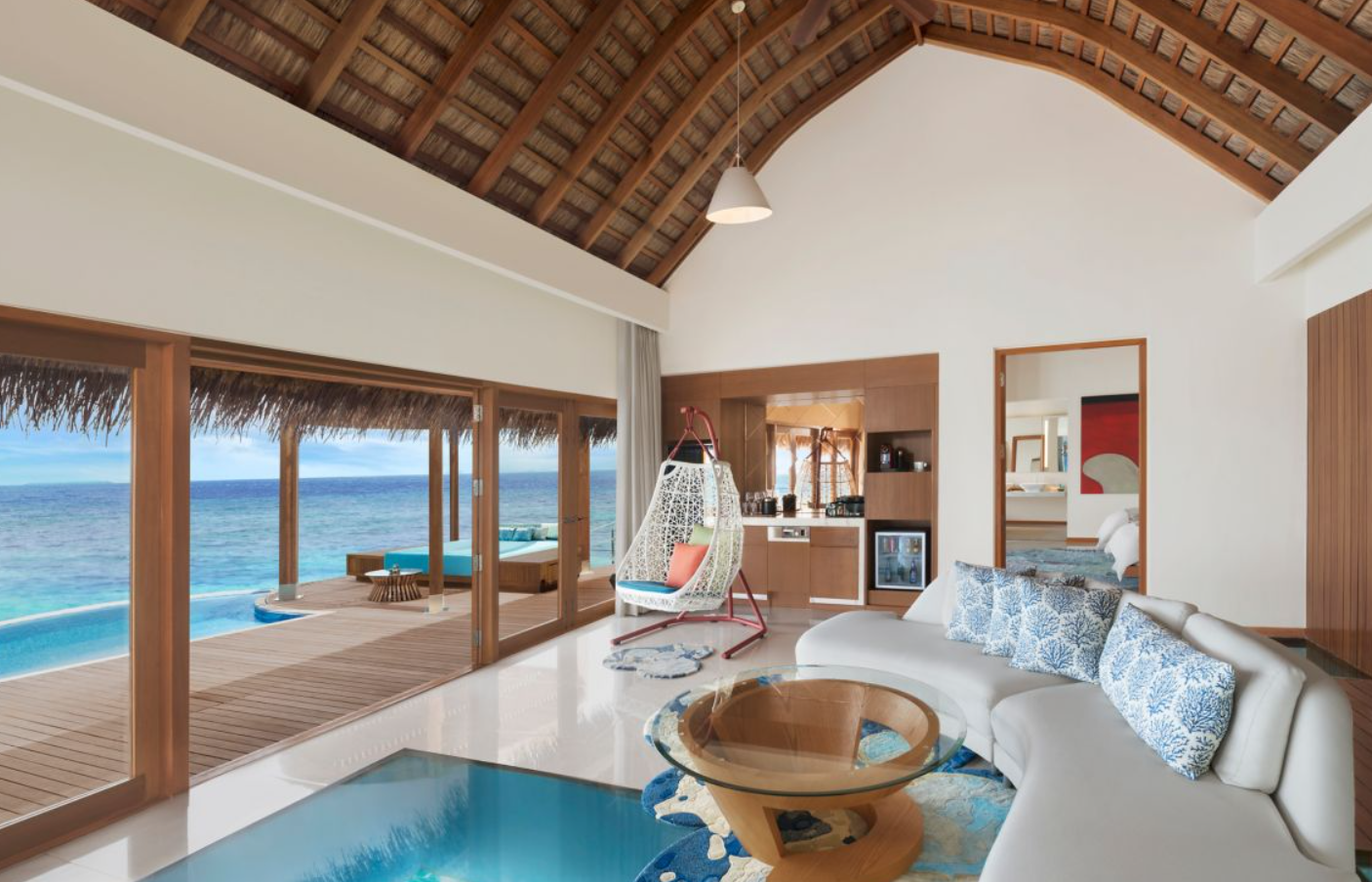 The resort features 77 villas (overwater and beach villas), completely renovated and finished in a contemporary designer style with vibrant features and panoramic views.