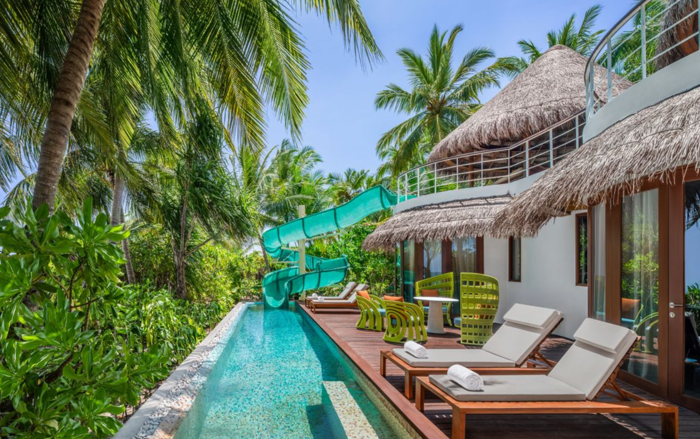 • two-bedroom Oasis Beach Villas (up to ~376 m²) with a private pool and even a waterslide