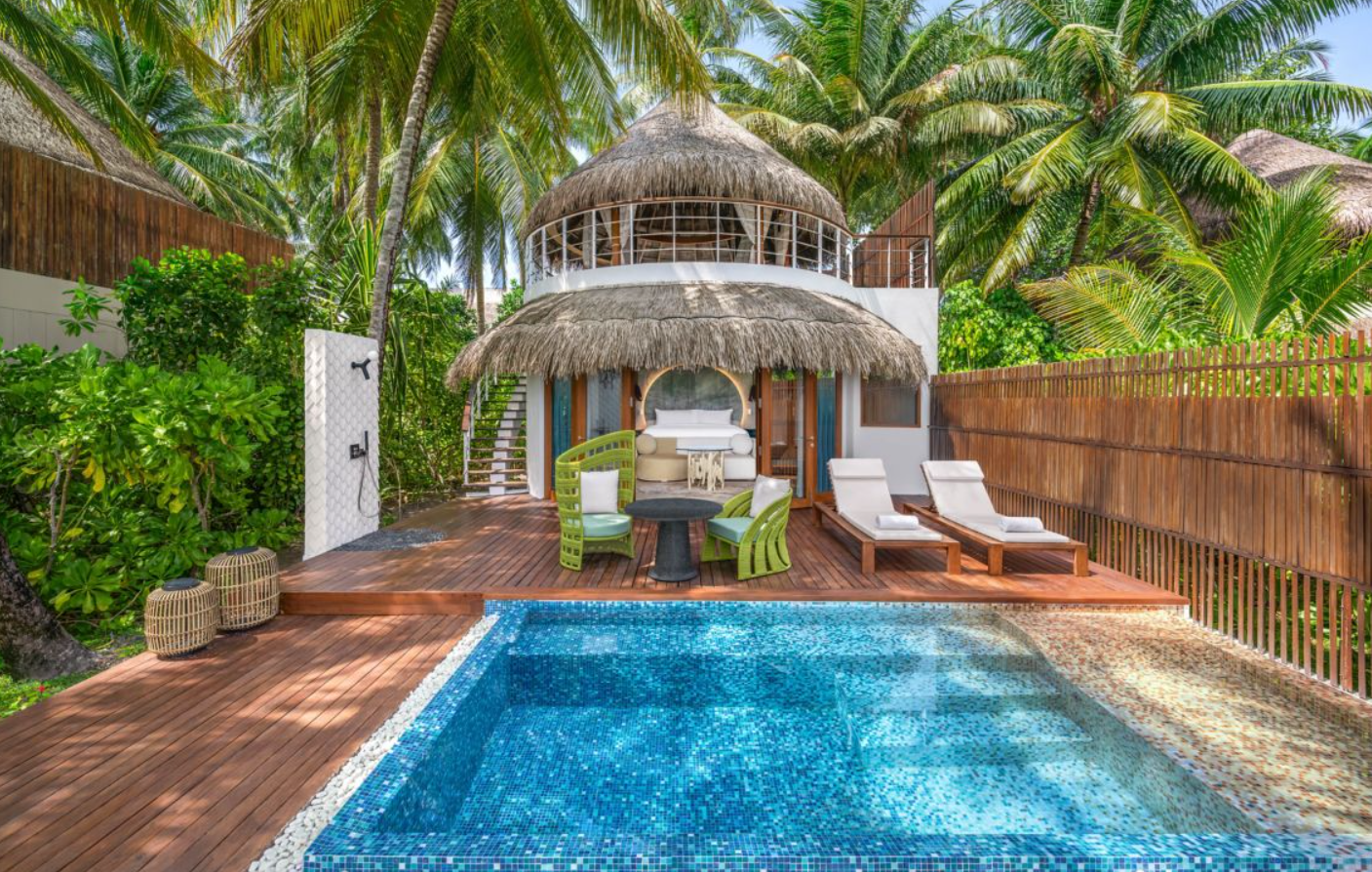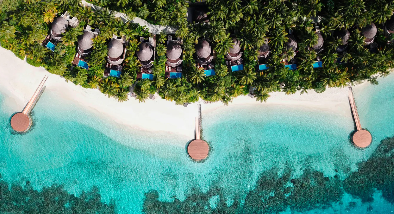 The resort is surrounded by white beaches, a turquoise lagoon, and one of the best house reefs in the Maldives, making it particularly attractive for snorkeling and diving. Balance is key: here you can completely unplug from the world while also enjoying music, sports, and parties.