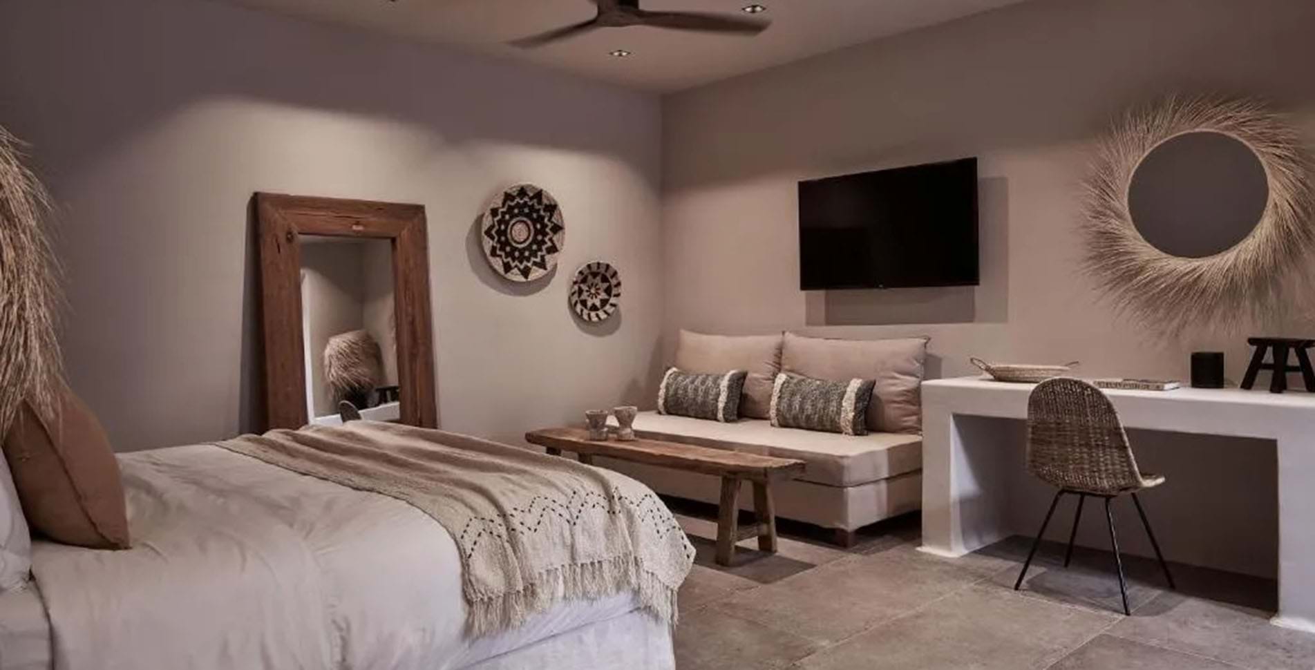 The architecture and the modern bohemian style of this deluxe room inland creates a unique atmosphere while its handmade furniture and high-tech appliances will simply captivate your mind and soul.