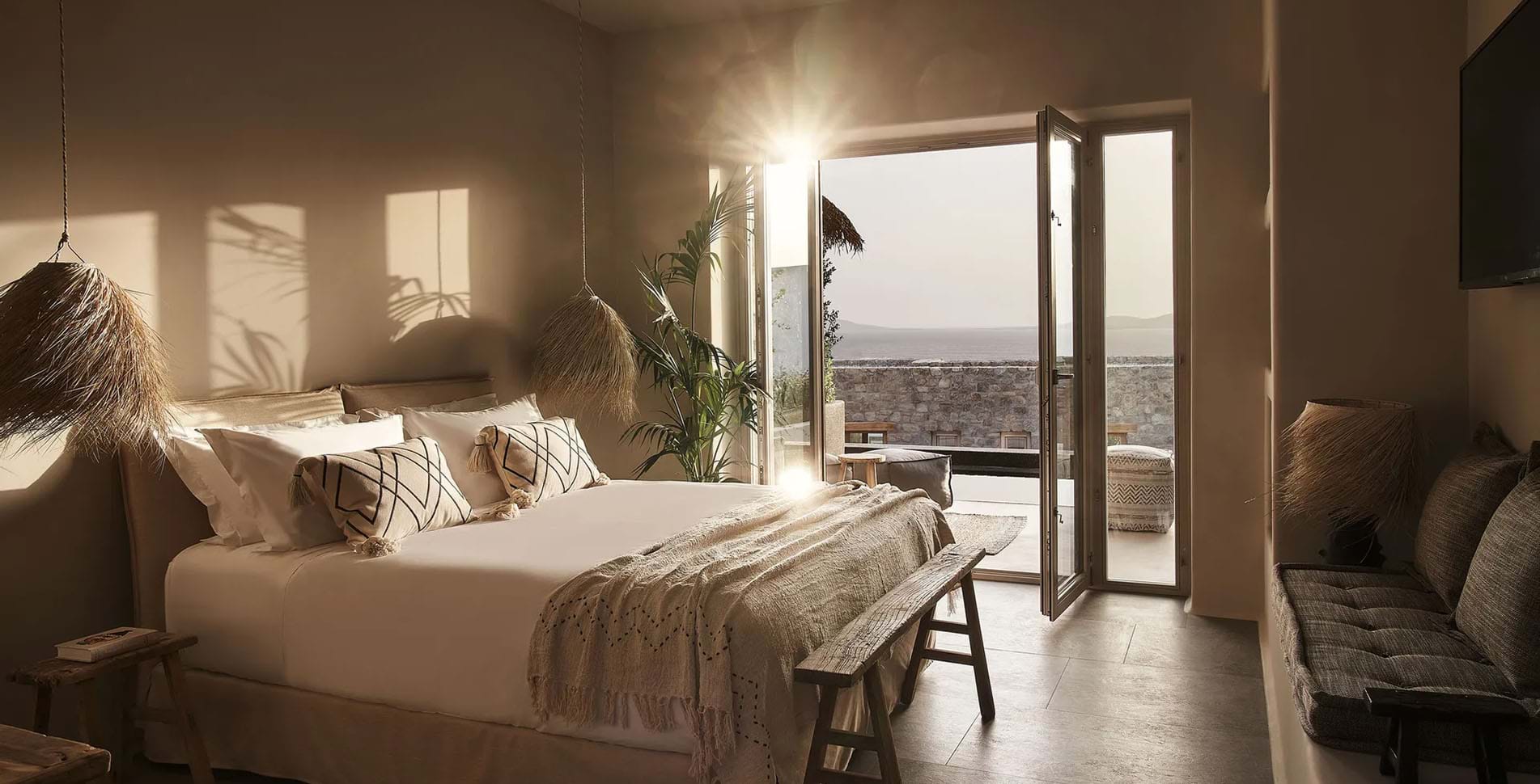 A soul-soothing paradise, signature Amyth Seaview Pool Suite fuses Aegean architecture with stylish boho-chic interiors, an exclusive pool, spacious sunbathing terrace and an outdoor gym for pure hideaway hedonism: the ultimate in uninterrupted relaxation. Not to mention sweeping sea views and dazzling sunsets.