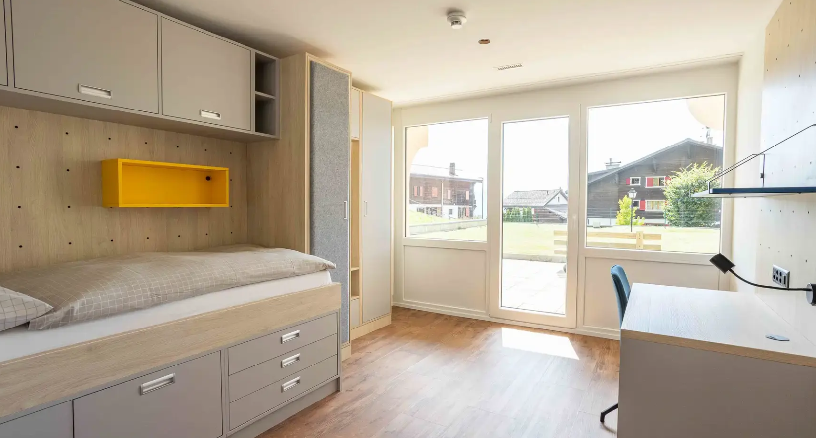 Camp participants live on the campus of Collège Alpin Beau Soleil in modern, cozy residences in the Alpine style.