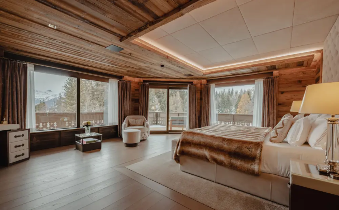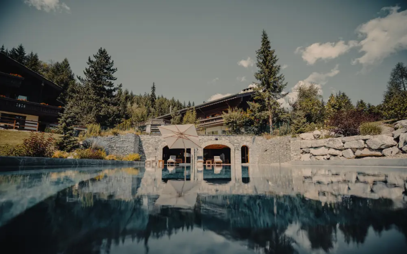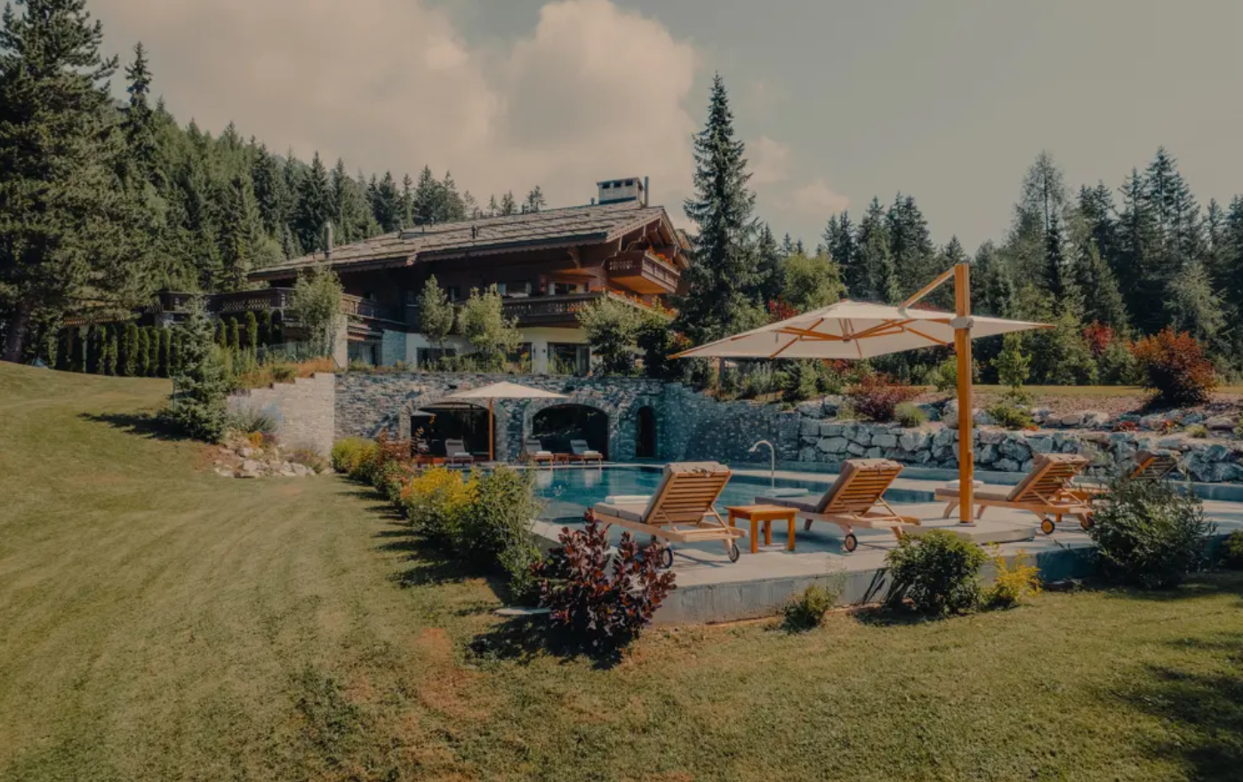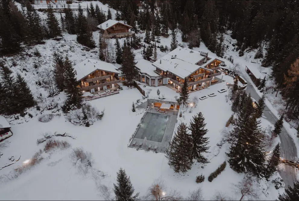 This is a secluded mountain residence, located in the forest on the quiet plateau of Plan Mayen. It consists of two adjacent chalets overlooking a large heated pool, and also has a first-class spa center of 1000 sq. m., its own cinema, a cigar lounge and unrivaled service no worse than a luxury hotel.