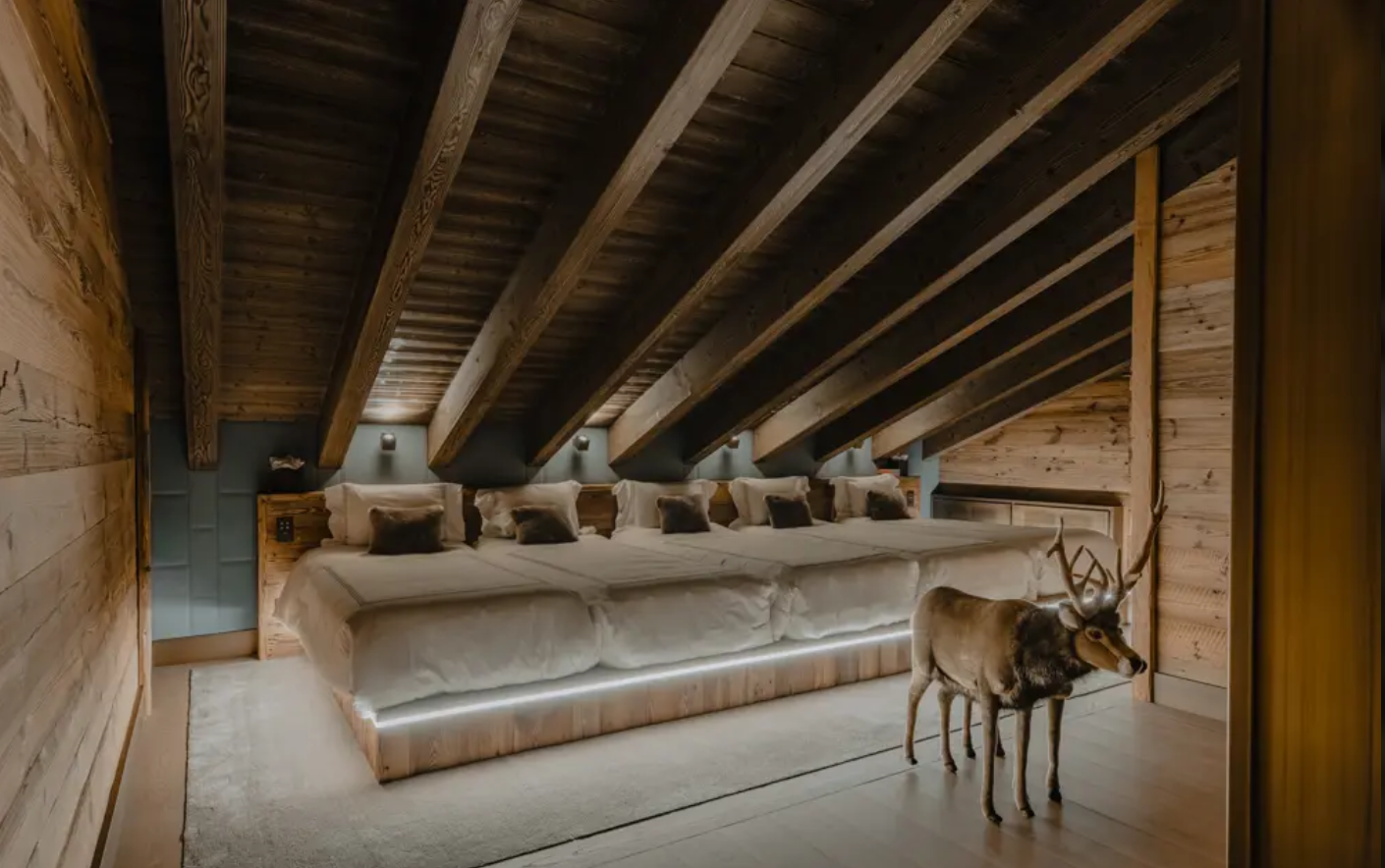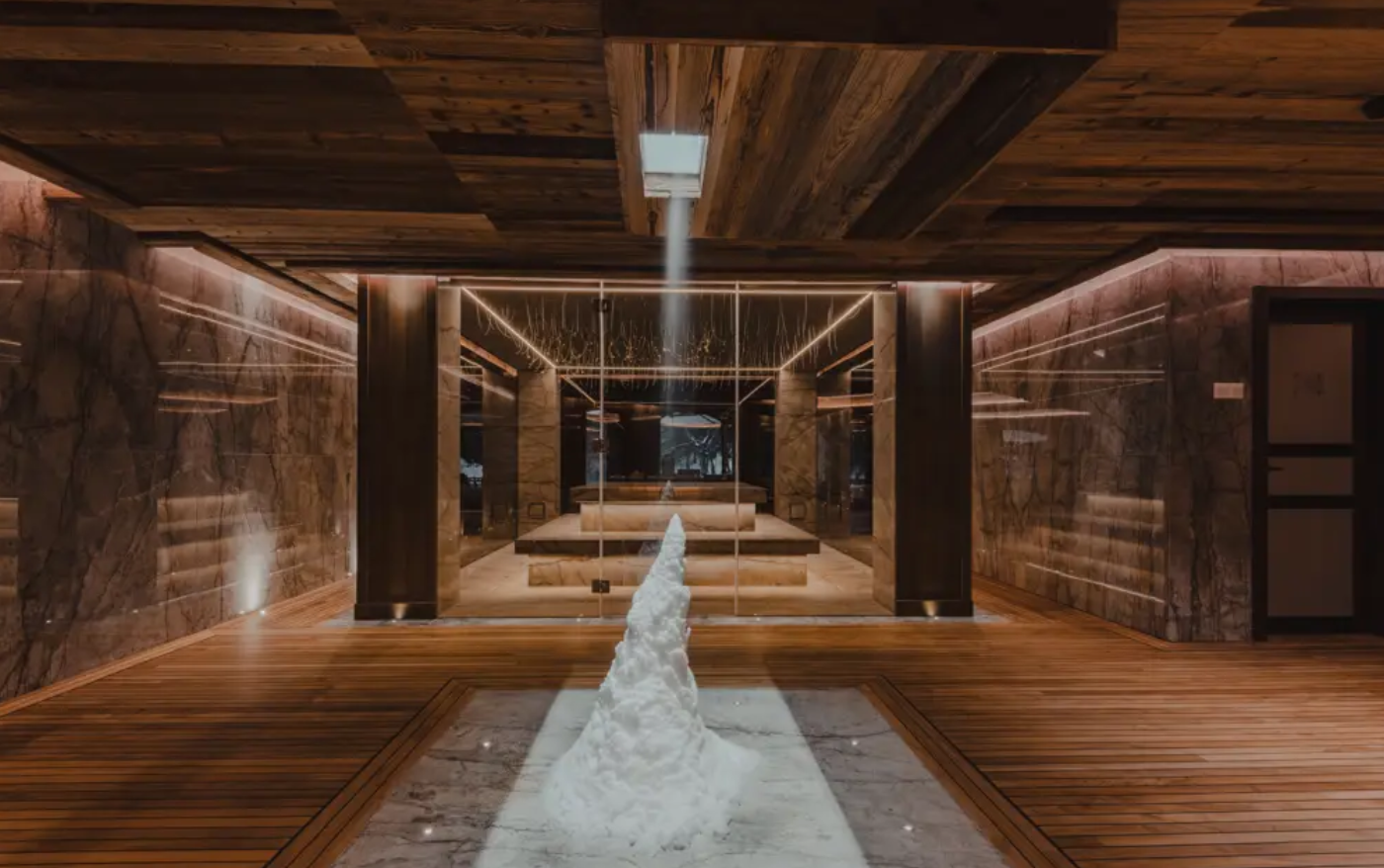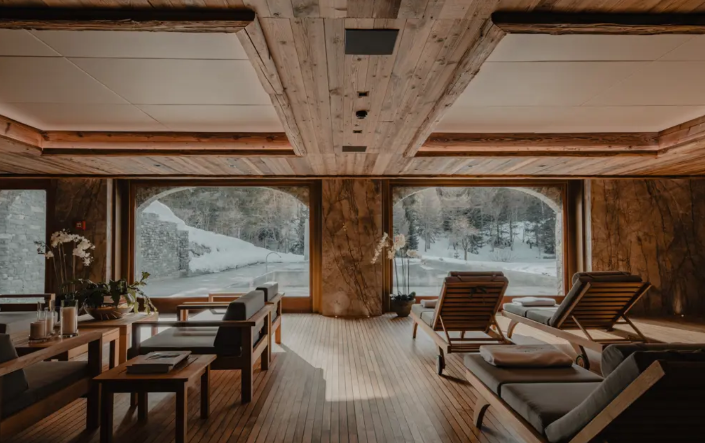 This is a secluded mountain residence, located in the forest on the quiet plateau of Plan Mayen. It consists of two adjacent chalets overlooking a large heated pool, and also has a first-class spa center of 1000 sq. m., its own cinema, a cigar lounge and unrivaled service no worse than a luxury hotel.
