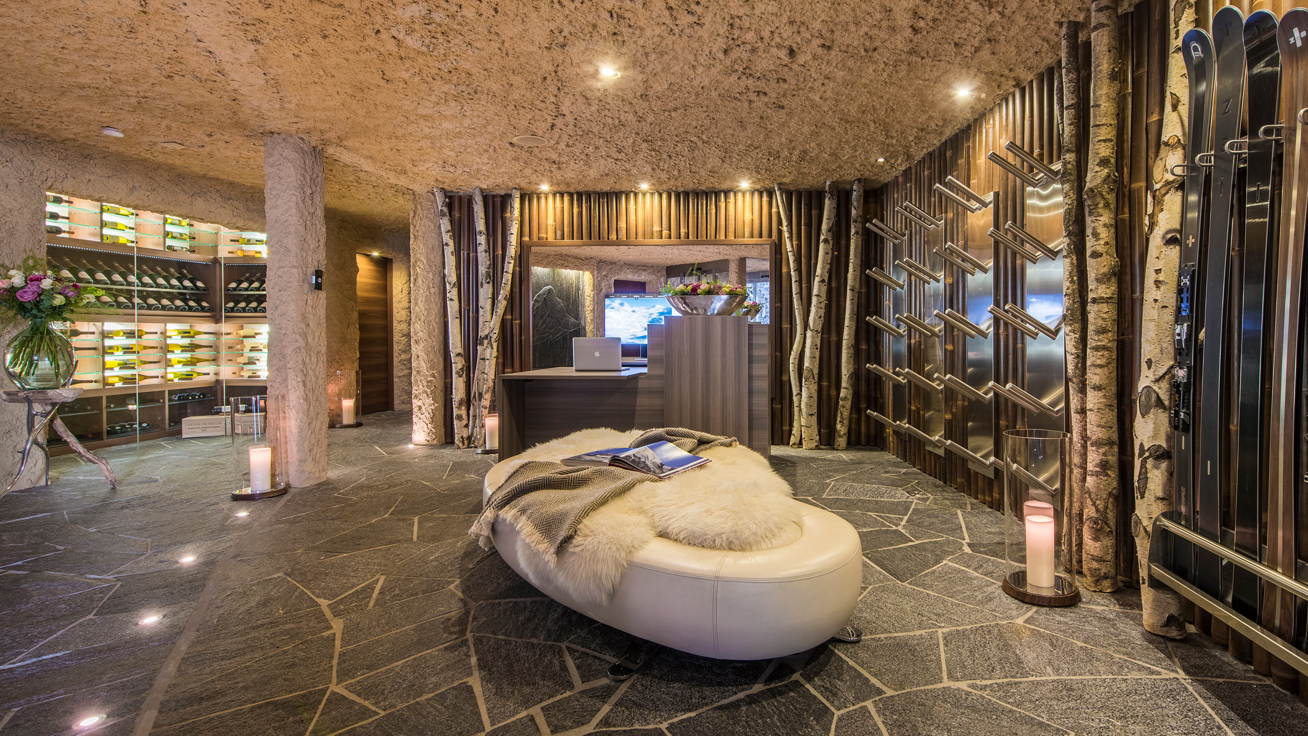 The chalet has 5 individually designed double bedroom suites, all with floor-to-ceiling windows, en suite bathrooms, sleeping and lounging areas and walk-in closets.