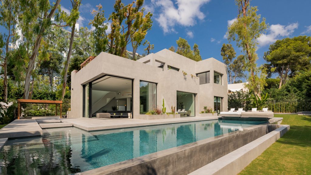 This luxurious new villa is located in one of Marbella's most prestigious areas, Los Monteros. Built and furnished to the highest standards, it is within walking distance of the five-star Los Monteros Hotel, just 500 meters from the beach and several beachfront restaurants. The villa was awarded the 2021 International Contemporary Architecture Design Award.
