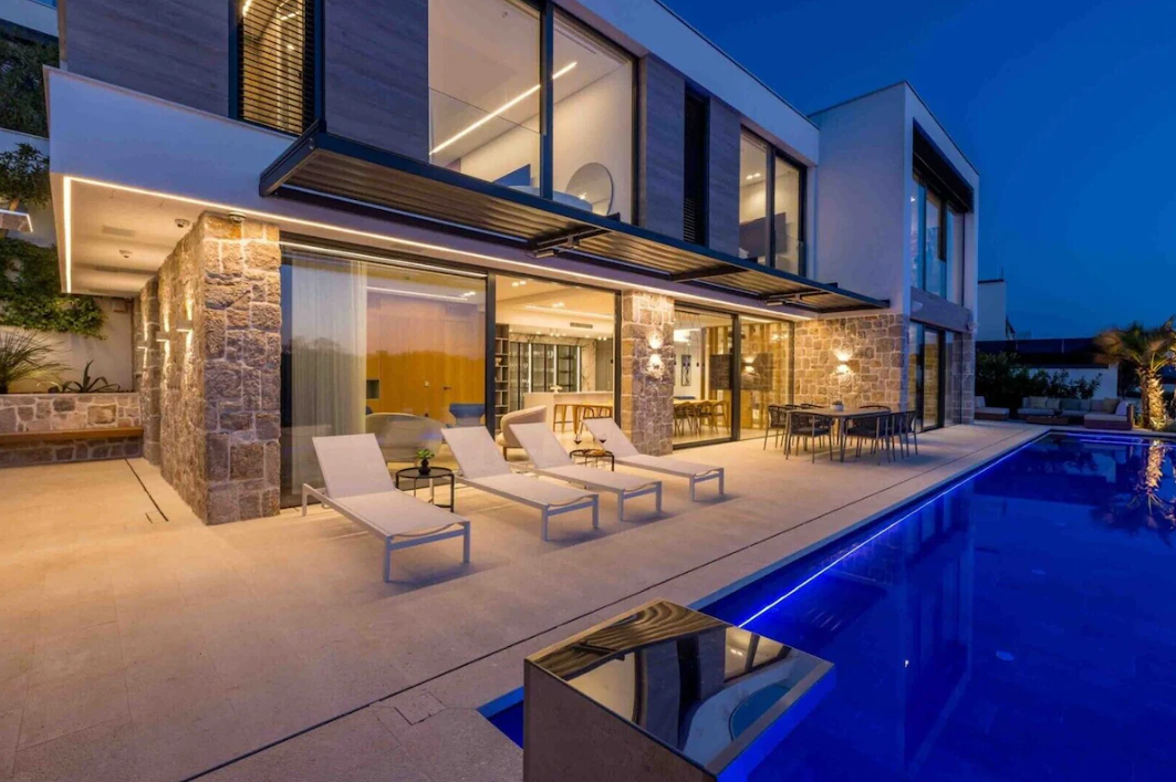 Luxury Beachfront Villa Smart Sienna: This villa combines modern design with comfort and proximity to the sea. Built with attention to detail, the villa offers panoramic views, spacious living rooms, glass facades, smart technology, and everything you need for an all-inclusive vacation with a sense of privacy. It's ideal for both family and group vacations.