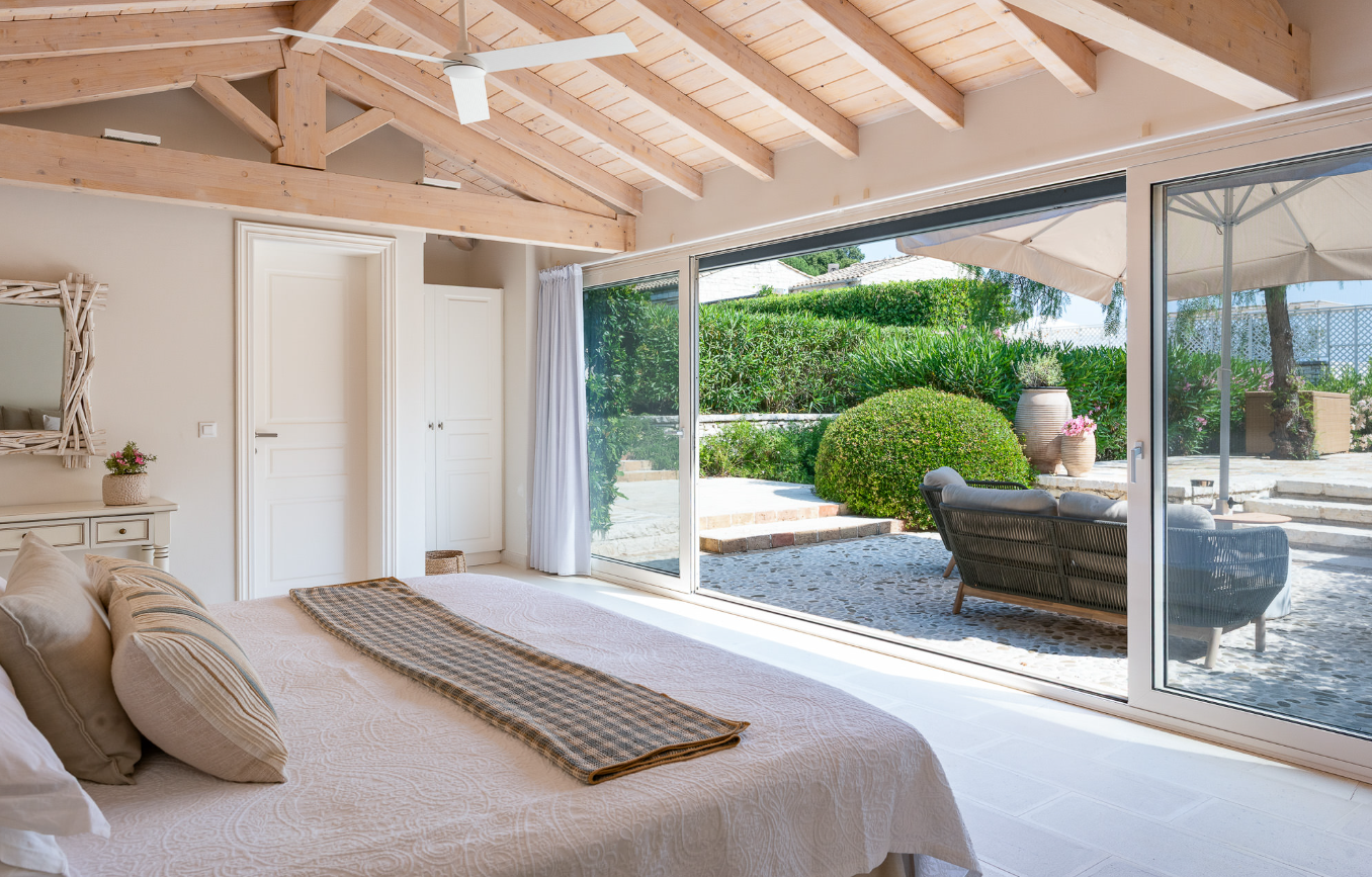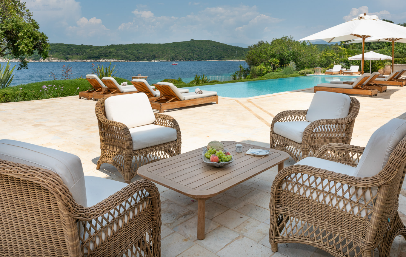 Villa Levanta is an elegant and luxurious seafront villa with direct beach access and a private dock. Situated in one of Corfu's most coveted locations, it combines contemporary style with Corfiot charm: terraces shaded by olive trees, lavender-lined paths, and bespoke furnishings. The interiors are bright and spacious, the design is refined, and the atmosphere is relaxed yet high-class. The villa strives to provide guests with an exceptional holiday experience—sea, nature, comfort, and privacy.