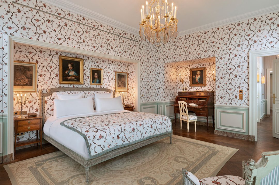 There's a hotel on 14 rooms in the Palace of Versailles. His project was developed by Christoph Tollemer, studying the archival materials in depth, and the best French craftsmen have carefully re-established historical details. Almost all the numbers are named names of people who are somehow connected to the palace.