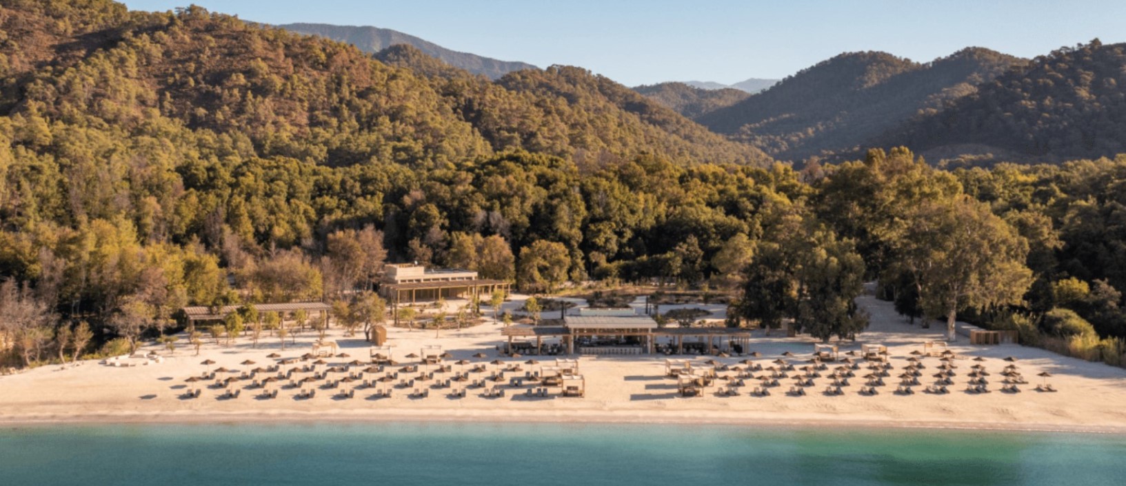 A boutique hotel on the secluded Günlüklü Bay near Fethiye. The architecture is inspired by Lycia and Japan, spaces for silence and recovery. Villas and cabanas made of natural materials, sound healing in Sound Temple, yoga, meditative practices. The cuisine is based on local products and cooking over an open fire. Ideal for a reboot.