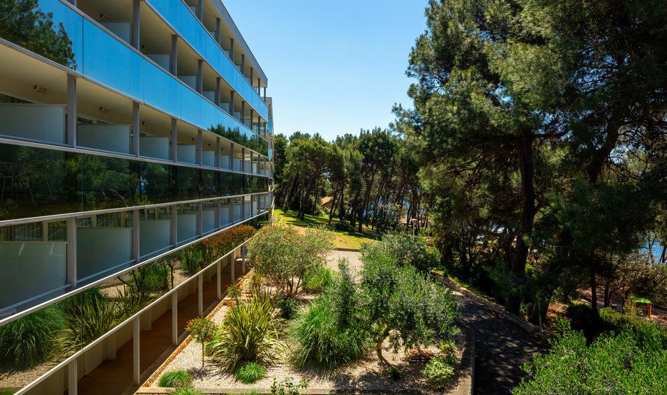 A cozy hotel surrounded by pine trees, just a step away from the beach of Veli Žal.