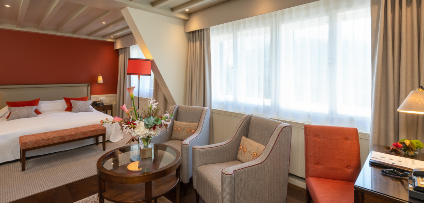 Этот просторный, залитый светом и прекрасно меблированный двухкомнатный люкс площадью около 130 м2, выходящий окнами на юг, предлагает великолепный вид на озера и горы. Он включает в себя роскошную гостиную, просторную спальню, две ванные комнаты, в том числе отдельную душевую кабину, и большую солнечную террасу.
