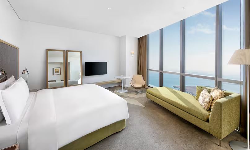 В отеле 382 номера различных категорий, включая Guest Room и Suite, а также 199 резиденций. Интерьеры номеров сочетают стильный современный дизайн и изысканную роскошь в арабских традициях, из панорамных, во всю стену окон номеров, открываются потрясающие виды на город, набережную и воды Персидского залива. Также отель располагает клубными номерами, гостям которых предлагаются дополнительные услуги и доступ в Club Executive Lounge на 45 этаже, где подаются завтраки, десерты, легкие закуски и напитки в течение дня, бесплатный доступ в интернет, услуги дворецкого, пользование переговорной комнатой и ряд других услуг.