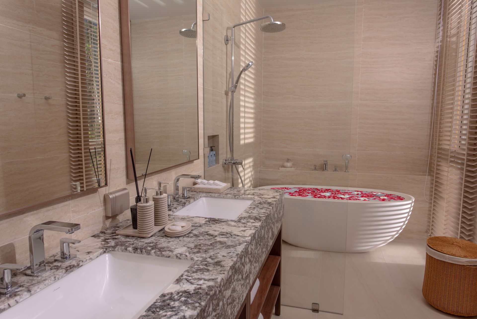 Все спальни оборудованы кондиционерами, большими телевизорами, рабочими зонами, премиум туалетными принадлежностями, халатами и тапочками. Некоторые спальни выходят прямо к бассейну или имеют виды на море и закаты.