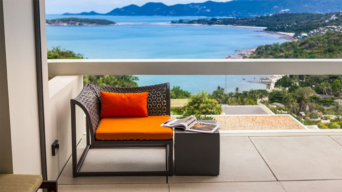 Мастер-спальня очень просторная, около 90 м², с super-king кроватью, собственным балконом с лаунж-зоной, видом на море и пляж; у остальных спален — балконы и виды на океан.