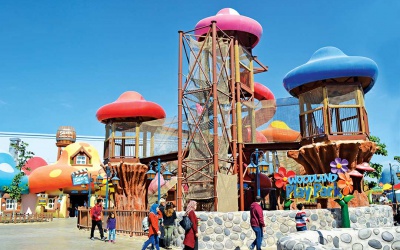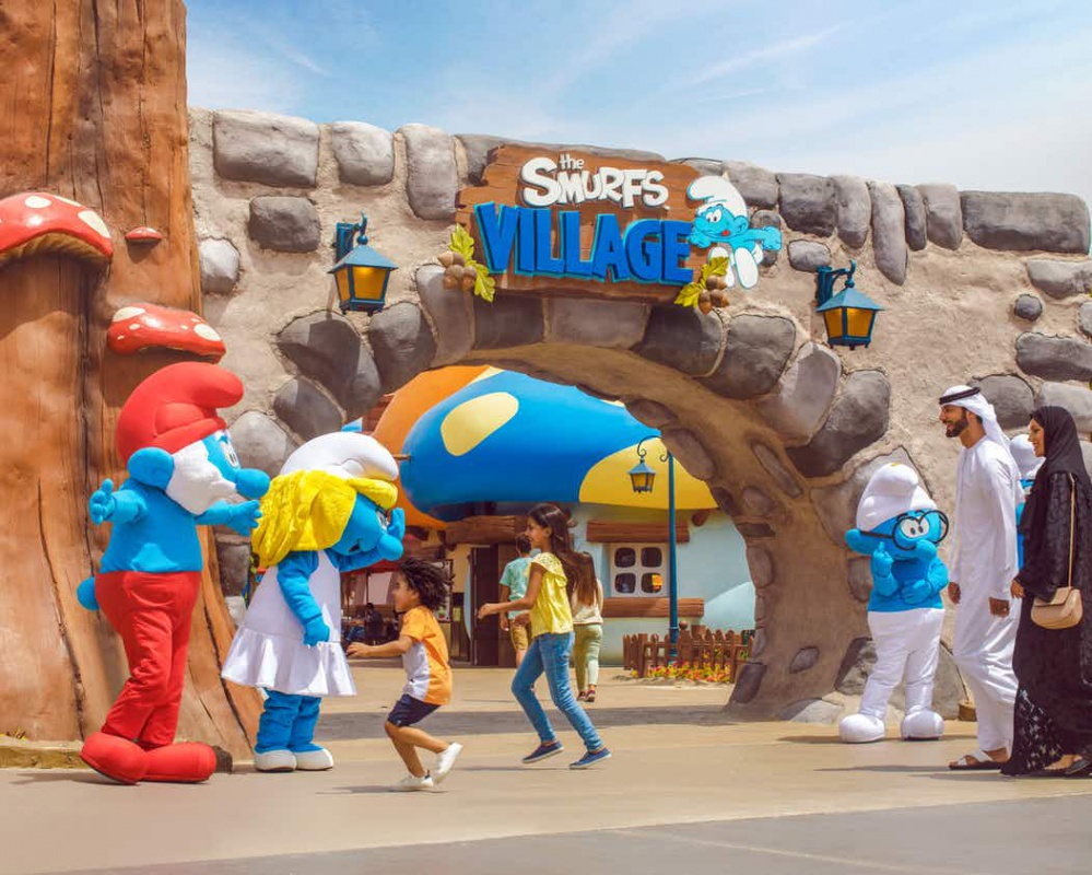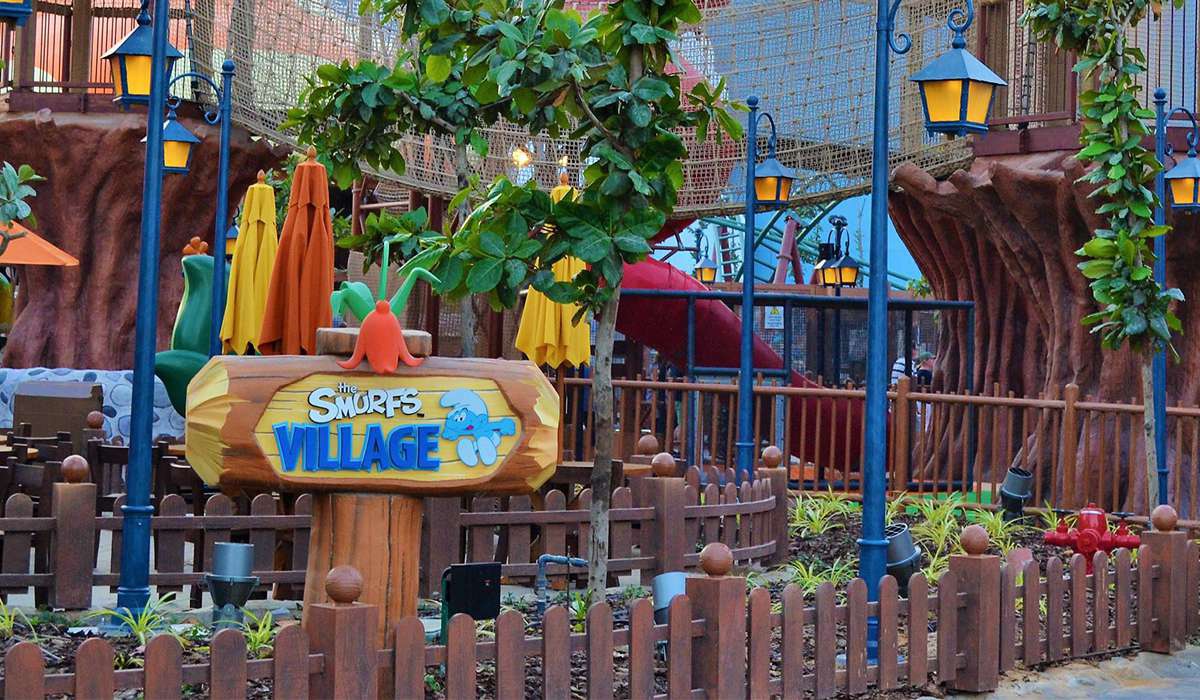 Smurfs Village. Put yourself in a unique atmosphere of fantastic and kindergarten tree with its unusual houses, fabulous fabulous characters and fascinating entertainment zones. Here, guests can visit two playgrounds, a children ' s and family rides, and participate in a fascinating show.