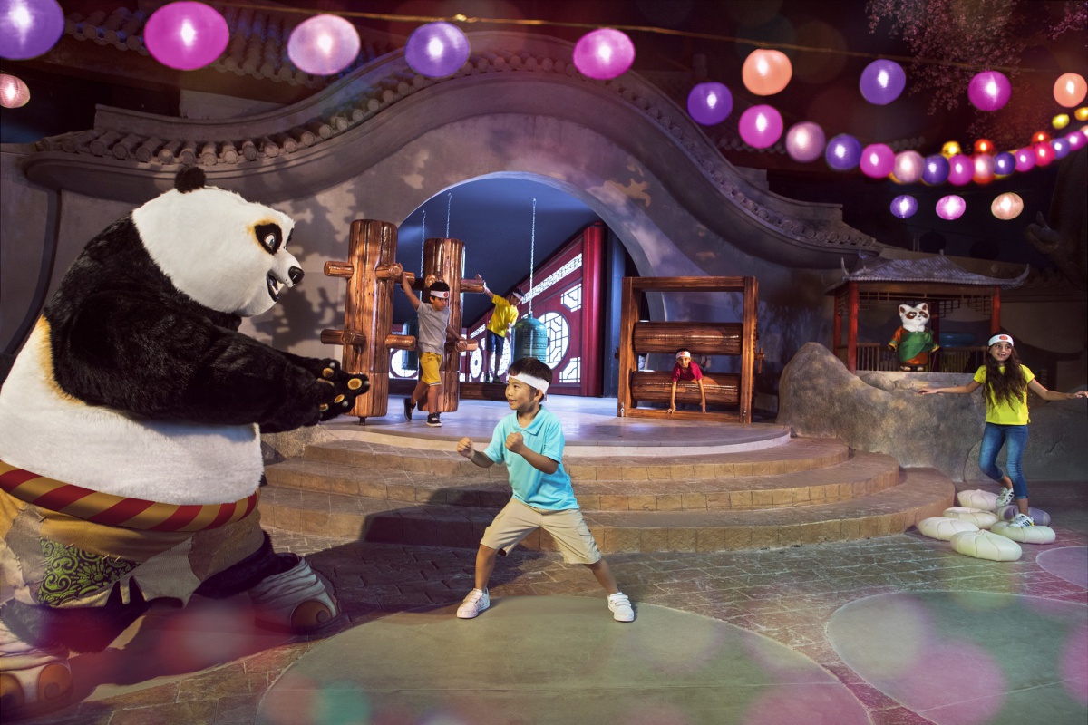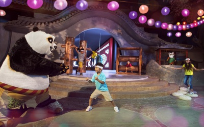 DreamWorks. At this location, visitors may meet with heroes such as the Shrek, the Trek, Kung Fu Panda and the Madagascar. There is a huge choice of child and family attachments, simulators and theatre show programmes.