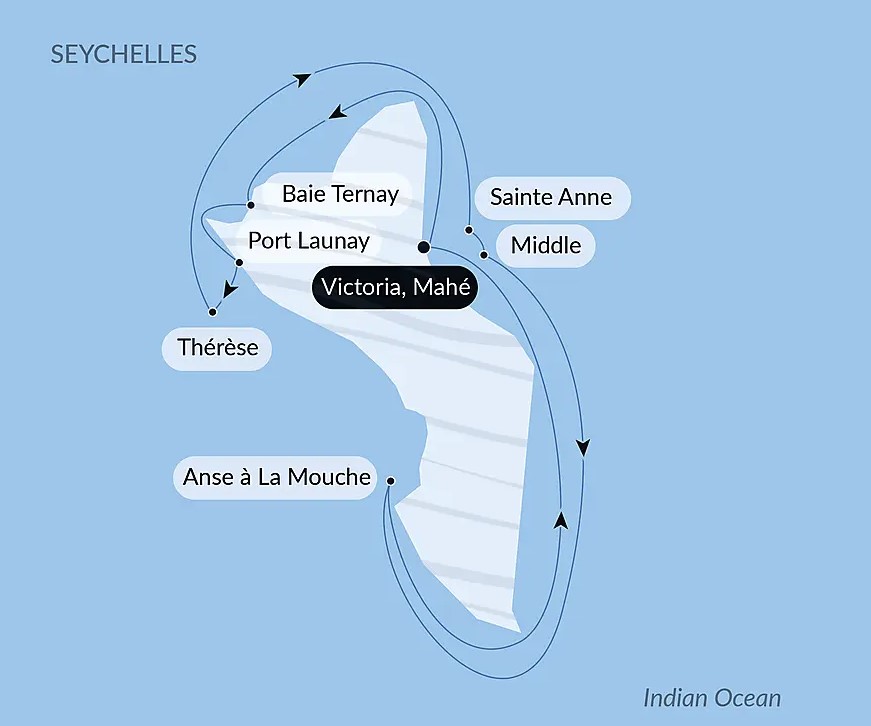 Day 5 17 December 2025 Arrival 17/12/2025 Departure 17/12/2025 ![]() | Sainte Anne Marine National Park Lying off the coast of Mahé, the Sainte Anne Marine National Park has been protecting the natural riches and exceptional sea beds of the verdant islands and turquoise lagoons of Sainte-Anne, Longue, Ronde, Moyenne and Cerf since 1973. These dream islands with their white sandy beaches edged with granite rock, crystal-clear waters and coconut trees promise unforgettable moments of relaxation and discovery. These colourful reefs and granite rocks and their large swathes of seagrass are home to a multitude of tropical fish as well as sea turtles, dolphins and several species of ray, including the manta ray. |
