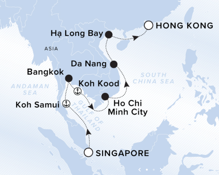 Day 8-9 6-7 january 2026 Arrival 08:00 Departure 14:00 ![]() | Ho Chi Minh City, Vietnam Ho Chi Minh City, formerly known as Saigon, is a metropolitan city offering travelers a unique mix of culture, history, and innovation. The city's rich cultural heritage is evident in its diverse architecture, with elegant French colonial buildings standing alongside traditional Vietnamese pagodas and modern skyscrapers. Uncover the city’s past with a visit to the historic Reunification Palace, which offers a poignant look at the country's history. Explore the bustling streets of the city's various districts, each offering its own unique charm and character from traditional water puppet shows to vibrant markets selling local handicrafts and souvenirs. Get a taste of Vietnam’s diverse culinary scene and sample local specialties such as pho, banh mi, and fresh spring rolls, as well as street food favorites like banh xeo and com tam |