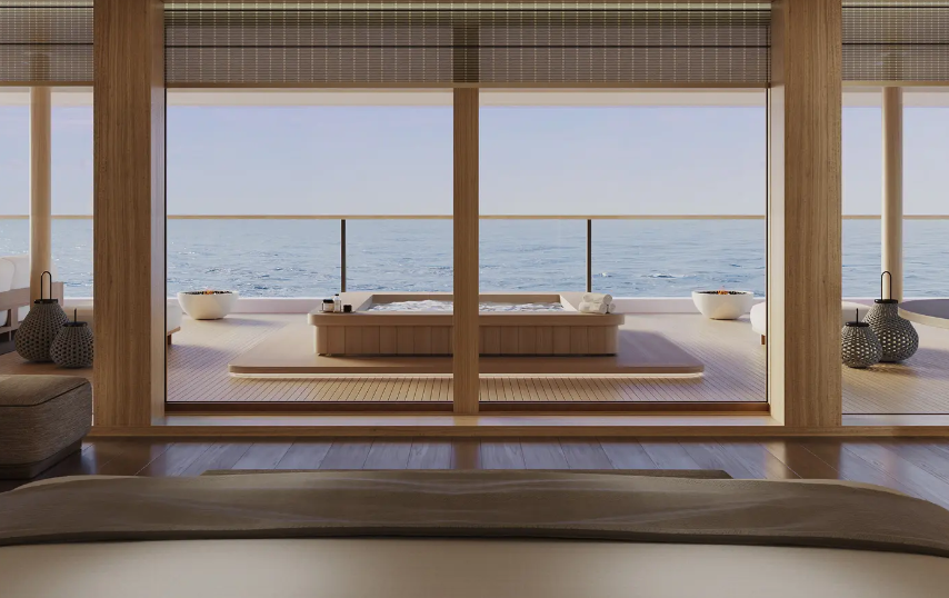 ![]() | Signature Suite Defined by light, the Signature Suite extends from 80.6 to 85.3 square metres (868 to 918 square feet) with bespoke craftsmanship creating harmony between interior and horizon. Located midship on Deck 6. |