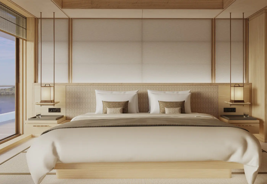 ![]() | Aman Suite Accessed by a private lift, Amangati’s signature suite spans 354 square metres (3,811 square feet), an enclave of calm with in-suite massage room and sweeping terrace with private Jacuzzi. Located aft on Deck 5. |